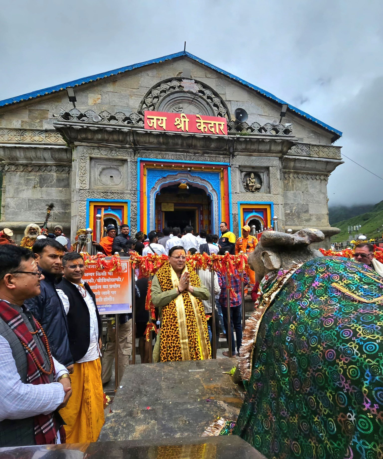 एक दिवसीय दौरे पर बाबा केदारनाथ धाम के दर्शन को पहुंचे मुख्यमंत्री पुष्कर सिंह धामी का कमिश्नर गढ़वाल विनय शंकर पांडे, आईजी पुलिस गढ़वाल करन सिंह नगन्याल, जिलाधिकारी डॉ सौरभ गहरवार एवं पुलिस अधीक्षक डॉ विशाखा ने वीआईपी हैलीपैड पर उनका स्वागत किया। इसके बाद, मुख्यमंत्री तीर्थ पुरोहित समाज एवं मुख्य पुजारी से मिले। मुख्यमंत्री ने बाबा केदारनाथ मंदिर में प्रवेश कर विशेष पूजा अर्चना एवं रुद्राभिषेक कर संपूर्ण विश्व एवं मानवता के कल्याण की कामना की। इस दौरान उन्होंने उत्तराखंड के सतत विकास के लिए भी बाबा केदार से आशीर्वाद मांगा। करीब 20 मिनट पूजा के बाद मुख्यमंत्री ने धाम में दर्शन करने पहुंचे श्रद्धालुओं एवं स्थानीय लोगों का अभिवादन कर श्रावण मास की शुभकामनाएं दीं। मुख्यमंत्री ने धाम के मुख्य पुजारी शिव शंकर लिंग का आशीर्वाद प्राप्त किया, साथ ही तीर्थ पुरोहितों के साथ धाम में चल रहे निर्माण एवं अन्य कार्यों के संबंध में चर्चा कर सुझाव मांगे। उन्होंने केदारपुरी में चल रहे पुनर्निर्माण कार्यों की समीक्षा करते हुए निर्माण एवं पुनर्निर्माण कार्यों में तेजी लाने एवं गुणवत्ता का ध्यान रखते हुए समयबद्धता के साथ सभी कार्य पूर्ण करने के निर्देश दिए।