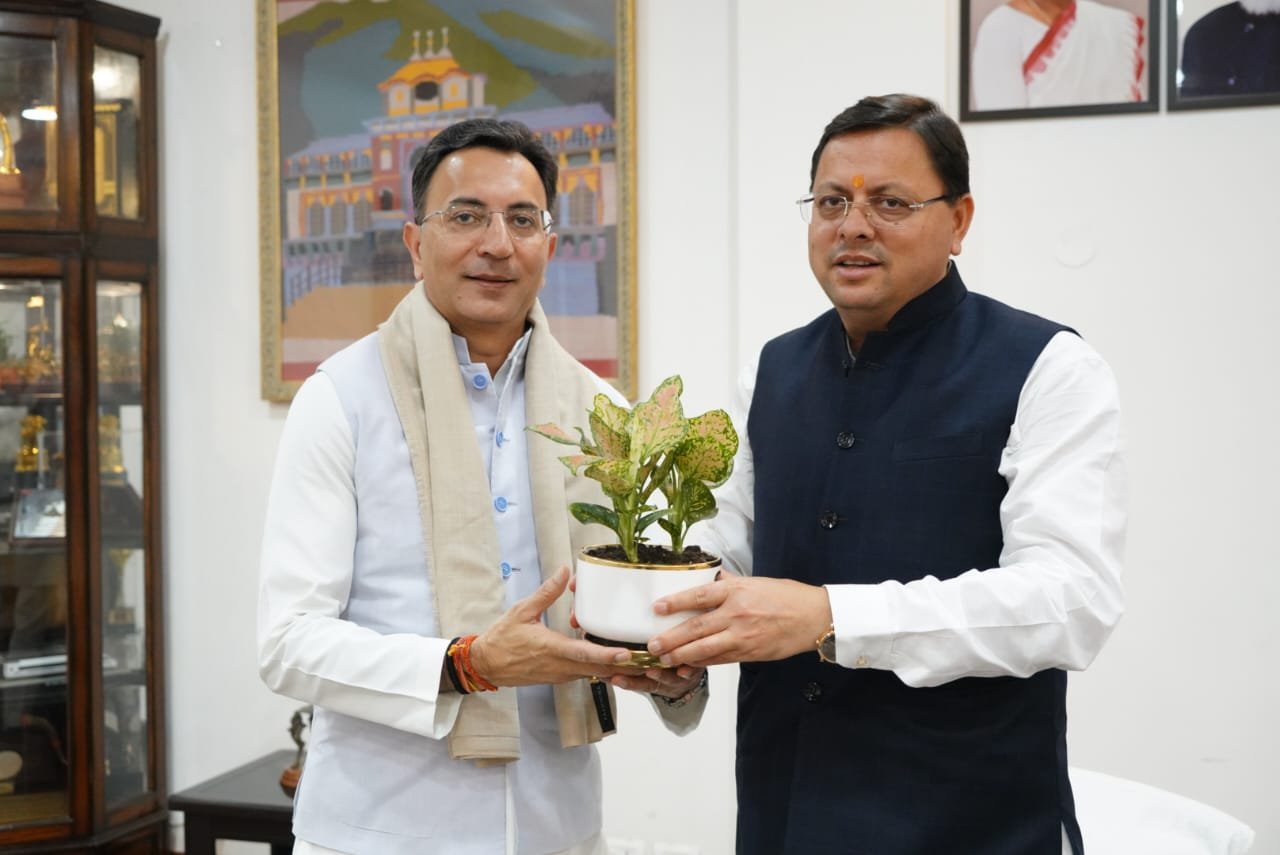 मुख्यमंत्री  पुष्कर सिंह धामी से शनिवार को मुख्यमंत्री आवास में उत्तर प्रदेश के कैबिनेट मंत्री  जितिन प्रसाद ने शिष्टाचार भेंट की।