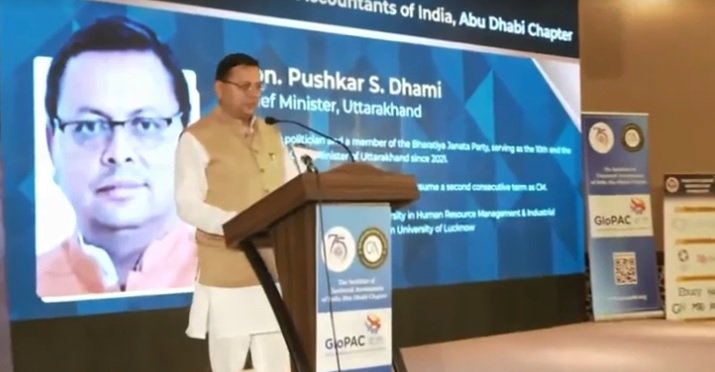 मुख्यमंत्री धामी ने बुधवार को अबु धाबी में इन्स्टीट्यूट ऑफ चार्टेड एकाउन्टेंट्स ऑफ इंडिया (आईसीएआई) द्वारा आयोजित कार्यक्रम में भी प्रतिभाग किया। इस दौरान मुख्यमंत्री ने अपने सम्बोधन में कहा कि विश्व में चाटर्ड एकाउन्टेंट्स के सबसे बड़े संगठन के मेघावी सदस्यों के बीच आना अपने आप में गौवर का क्षण है। उन्होंने कहा कि देश दुनियां में उत्तराखण्ड की पहचान देवभूमि के रूप में है जहां एक ओर केदारनाथ, बदरीनाथ धाम, जागेश्वर आदि मंदिर स्थित हैं, वहीं हमारा प्रदेश गंगा और यमुना जैसी पवित्र नदियों का उद्गम स्थल भी है। मुख्यमंत्री धामी ने कहा कि हमारी सरकार ने सांस्कृतिक, प्राकृतिक एवं आध्यात्मिक सुंदरता को बचाये रखते हुए प्रदेश के विकास का मार्ग चुना है। इसके लिए हमने सरलीकरण, समाधान, निस्तारीकरण और संतुष्टि को अपना मूलमंत्र माना है। उन्होंने कहा कि टूरिज्म, वेलनेस और हॉस्पिटेलिटी इंडस्ट्री के साथ-साथ उत्तराखण्ड में अनेक नए एवं गैर परंपरागत उद्योगों को विकसित किया जा रहा है।